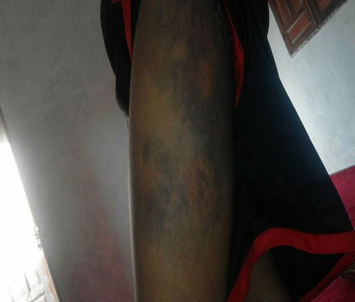 وبدأت آثار الضرب والكدمات بادية على الطفل الذي نشر قصته  قريبه أحمد أبو المعالي على صفحته في الفيسبوك.