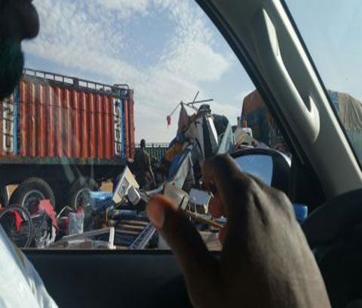 ووقع الحادث حسب شهود عيان عندما صدمت شاحنة تحمل أرقام تسجيل مالية ستة شاحنات على طريق الأمل أسفرت عن خسائر مادية جسيمة.