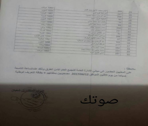 ودعت قيادة التجمع الناجحين في المسابقة إلى الحضور لدى مقر إدارتها العامة بنواكشوط يوم الاثنين 12 يونيو 2017، مصحوبين بملفاتهم وبطاقات تعريفهم.