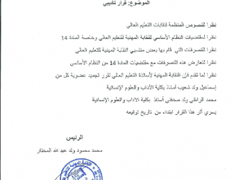 النقابة المهنية للتعليم العالي تجمد عضوية استاذين من (…)